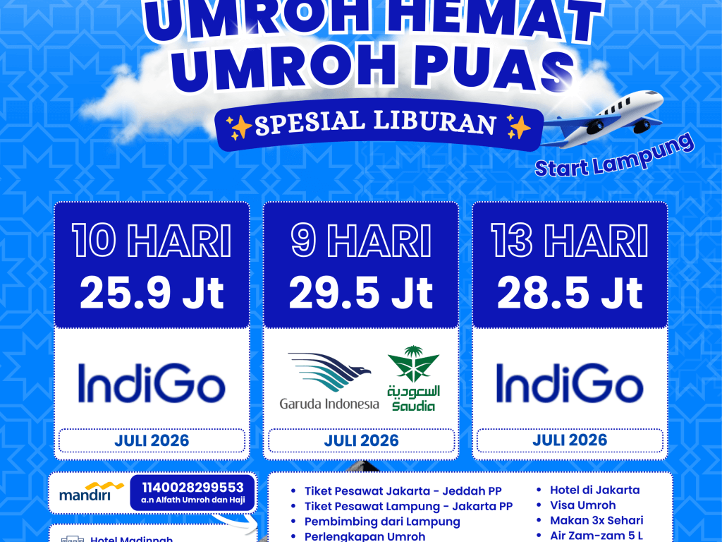 Umrah Ekonomis (9 Hari, Transit) Start Lampung