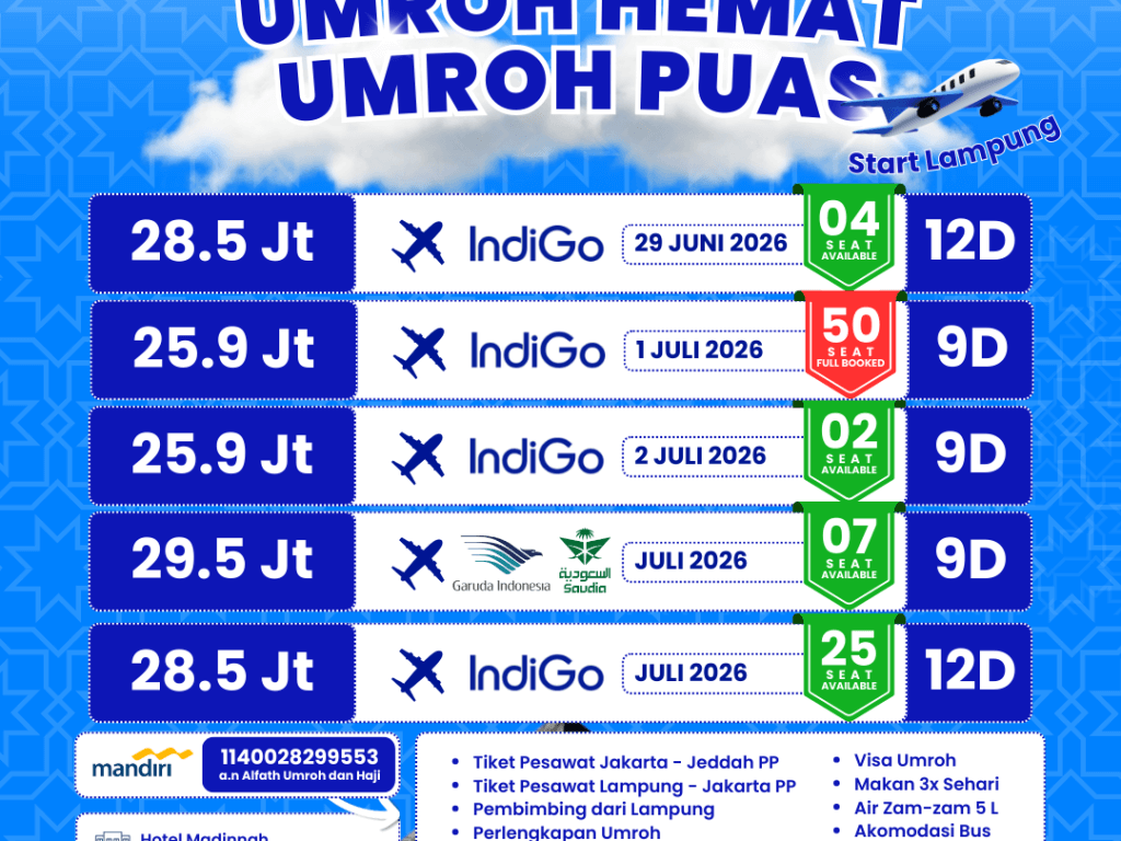 Umrah Reguler (12 hari, Transit) Start Lampung